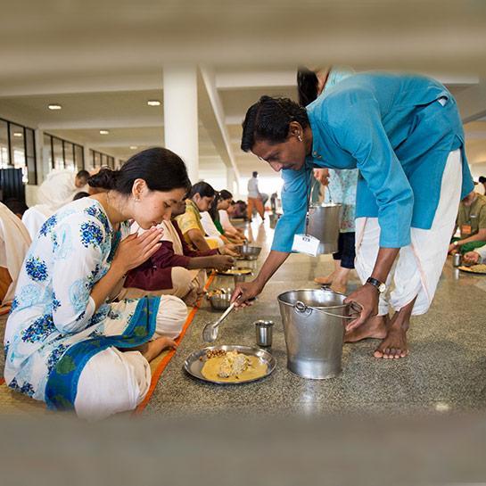 At Isha Yoga Center, thousands of sanyasis, brahmacharis, residents, and volunteers have dedicated their lives to working in the various spiritual and social initiatives of Isha to enhance human wellbeing. Twice a day, Annadanam is offered to these sadhakas, and to guests and visitors. Through a simple act of donating Annadanam, you can touch another life and enrich your own.