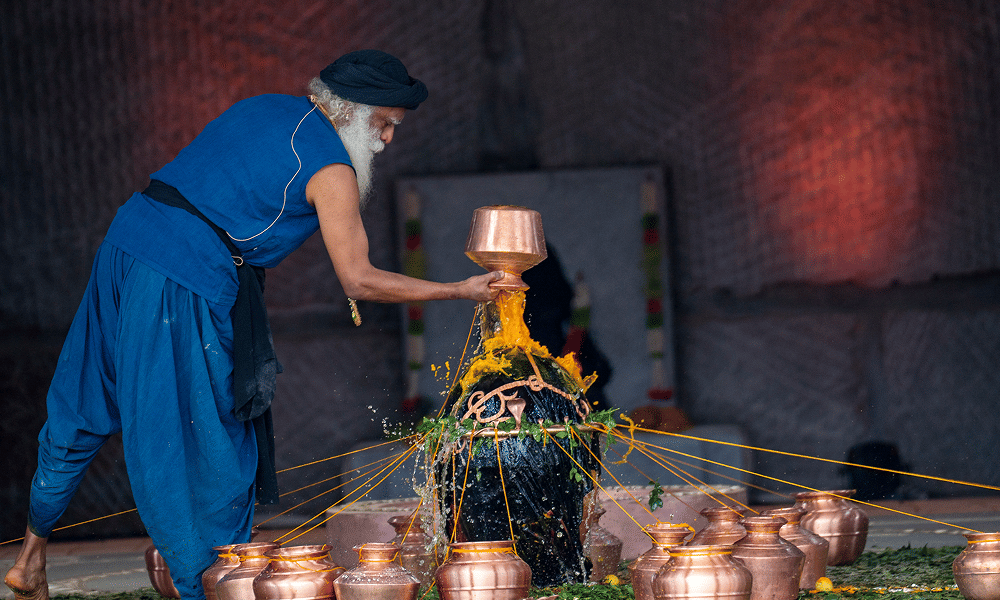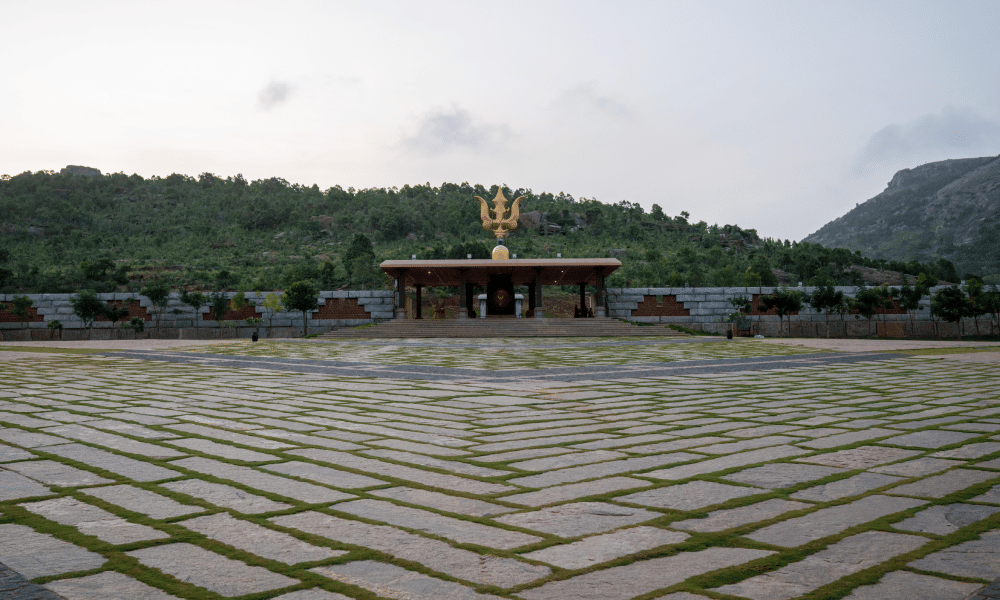 The 54-ft Mahashula represents the three basic dimensions of life – rajas, sattva and tamas. Containing a linga consecrated by Sadhguru to enhance the sattva aspect of life, the Mahashula guides one toward spiritual evolution.