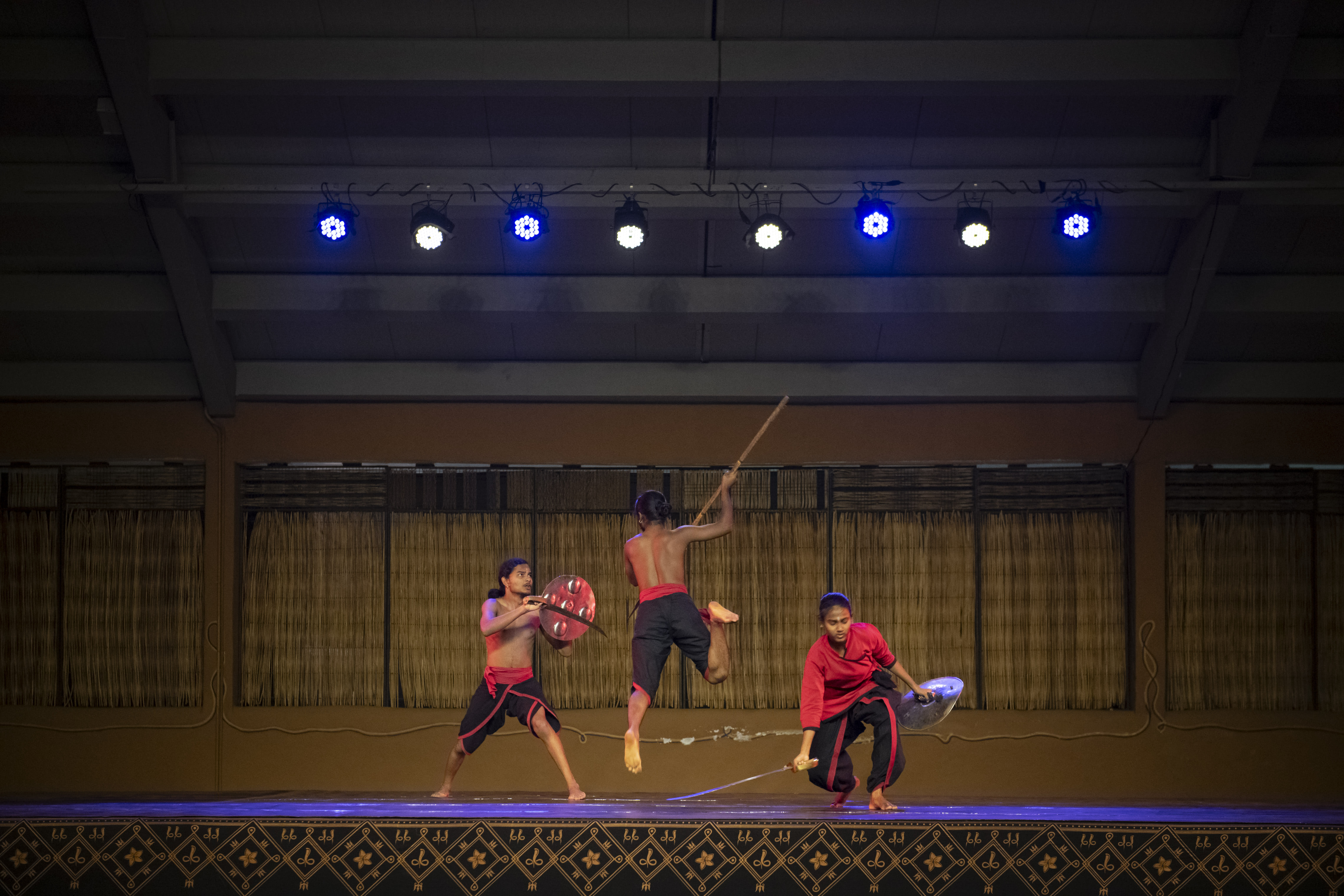 Los participantes de INSIGHT 2025 pudieron disfrutar de dos refinadas y sorprendentes actuaciones a cargo de los estudiantes del Sadhguru Gurukulam Samskriti. La primera fue una vívida demostración de Kalaripayattu, en la que los estudiantes se movían con disciplina, agilidad y un claro compromiso con alcanzar la maestría. La presentación fue a la vez controlada y enérgica, y permitió vislumbrar un antiguo arte marcial que se mantiene gracias a una práctica rigurosa.