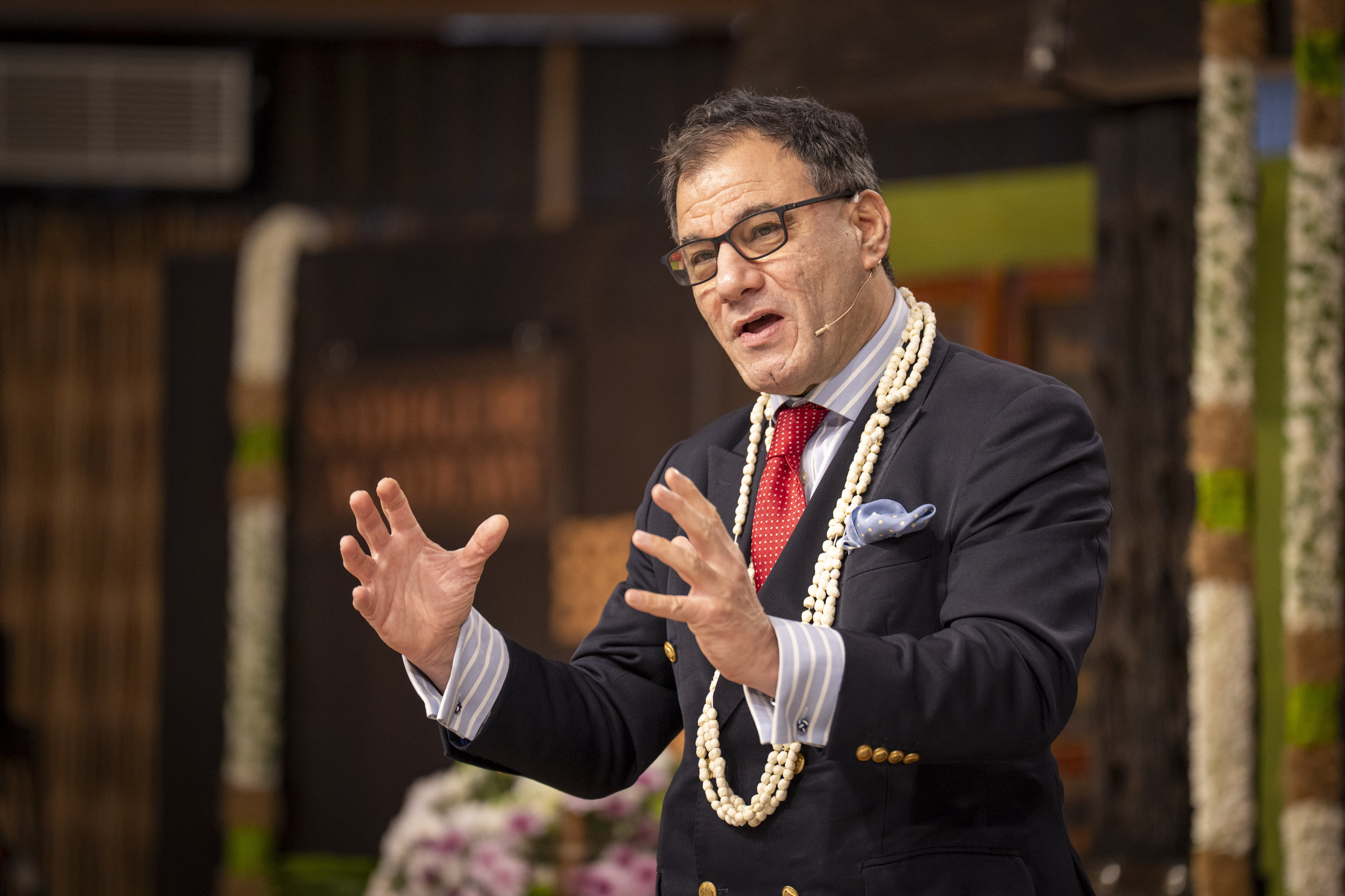 Hizo hincapié en que ahora son las empresas las que marcan el rumbo del mundo, pero la mayoría de los líderes carecen de la apertura, la competencia y la agilidad necesarias. Solo una pequeña parte, señaló, disfruta genuinamente de su trabajo: «Si tienes éxito, deberías estar rebosante de alegría». Al enmarcar el espíritu emprendedor como una aventura en lugar de una supervivencia, advirtió que vivir por debajo del potencial natural de cada uno es un «delito» que conduce a generaciones y sociedades letárgicas.