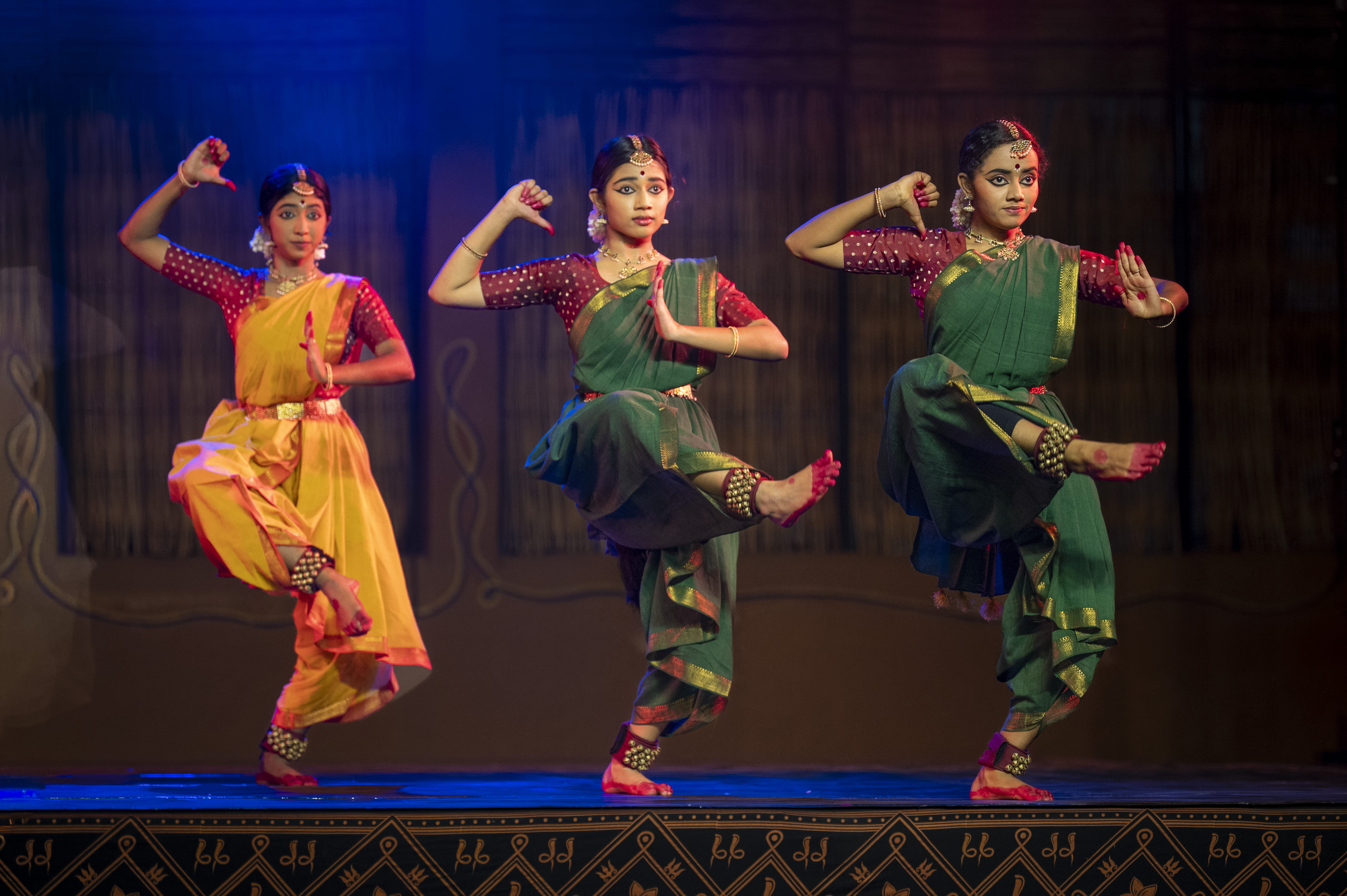 El segundo día, una actuación de Bharatanatyam con el Guru Ashtakam como banda sonora cambió el ambiente a uno de tranquila devoción. La precisión, la claridad expresiva y la gracia mesurada de las bailarinas mantuvieron la atención del público, permitiendo que se transmitiera el trasfondo espiritual de la pieza.