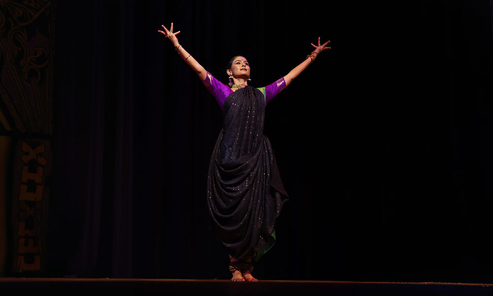 Bharatanatyam is one of the oldest classical dance forms that originated in southern India. Initially practiced as an offering in temples, Bharatanatyam today has adapted and evolved to be one of the most prevalent performing arts.