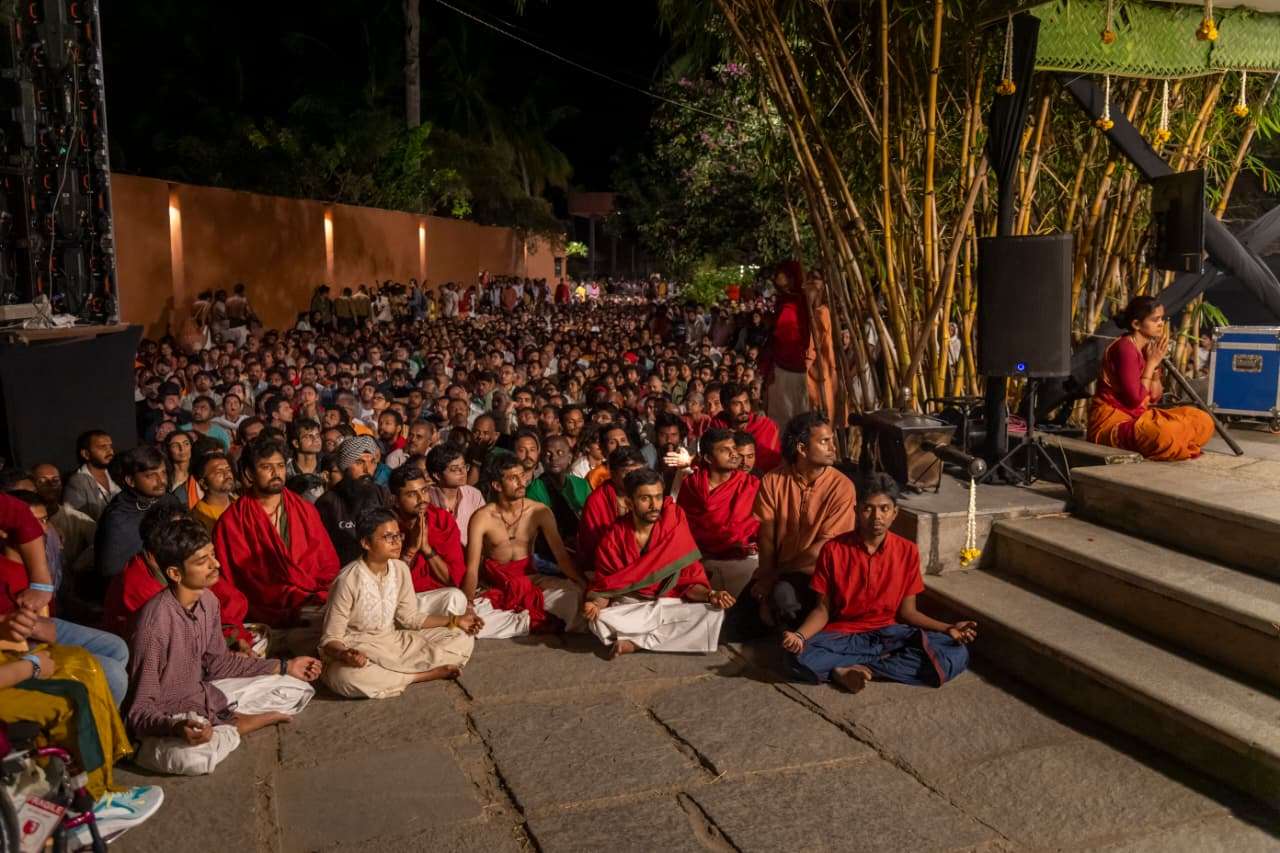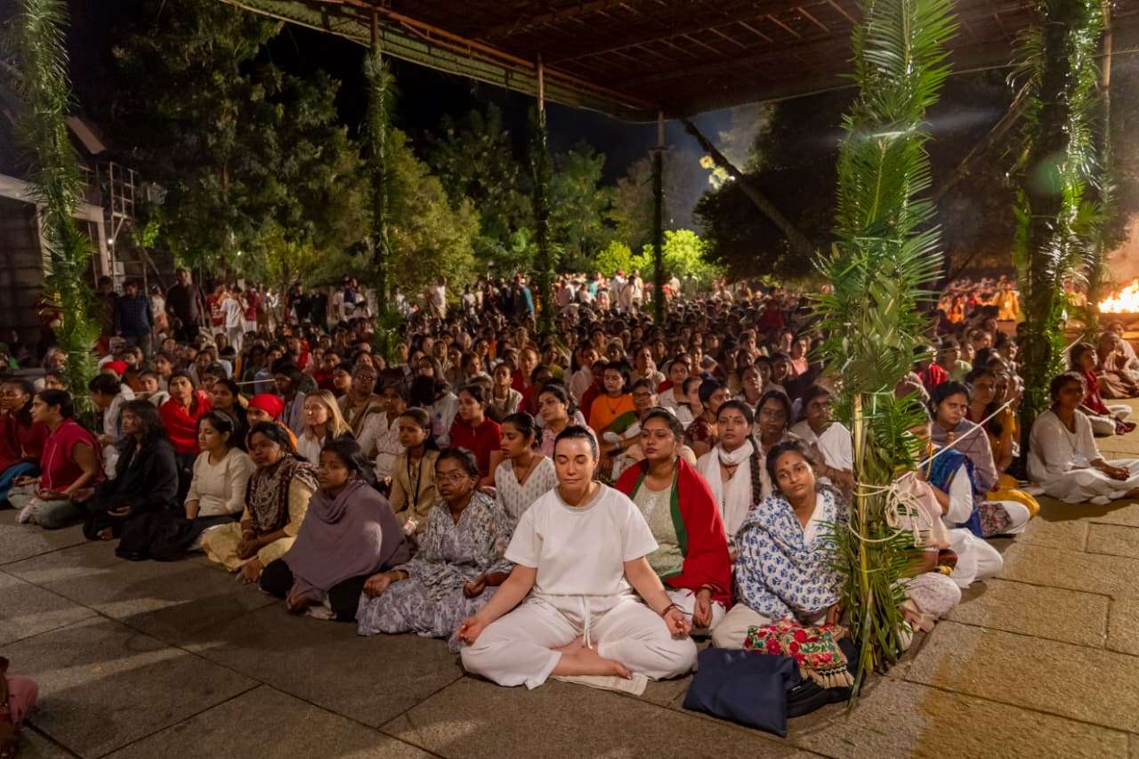 As night fell, devotees gathered outside Linga Bhairavi for the Kalabhairava Shanti. Everyone settled into quiet anticipation as the evening process began.