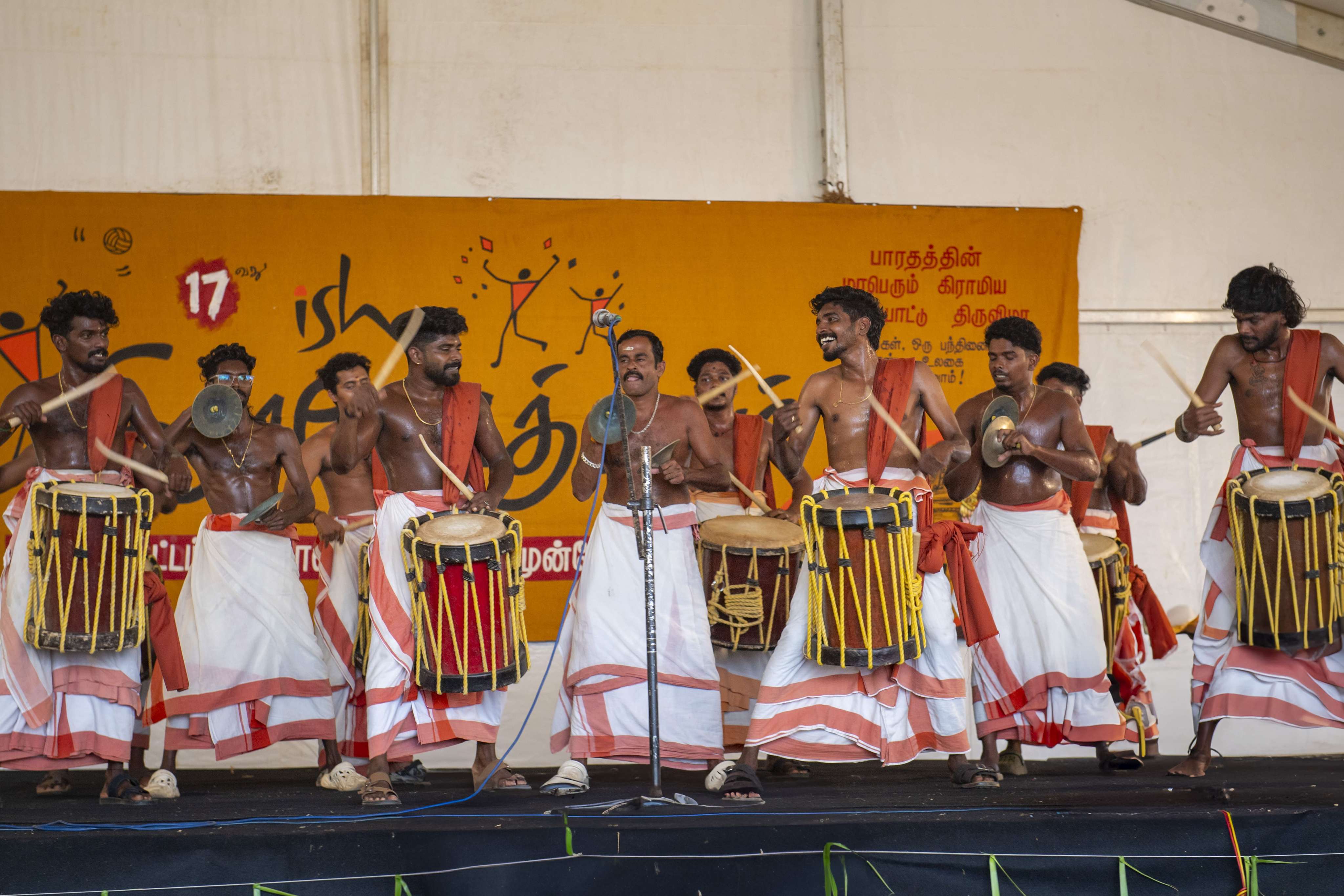 Two thousand women took to the plaza to perform Tamil Nadu’s graceful folk dance, Valli Kummi, their synchronized movements a celebration of rural heritage.