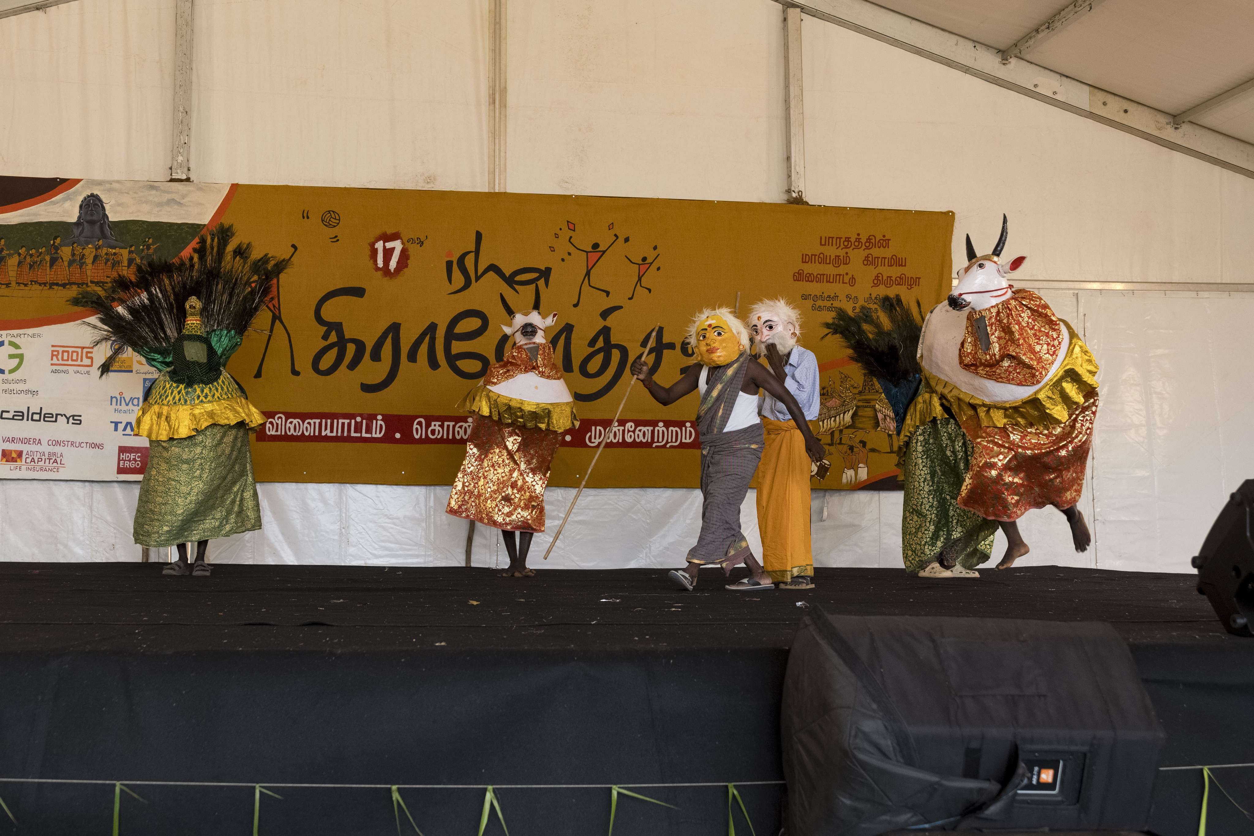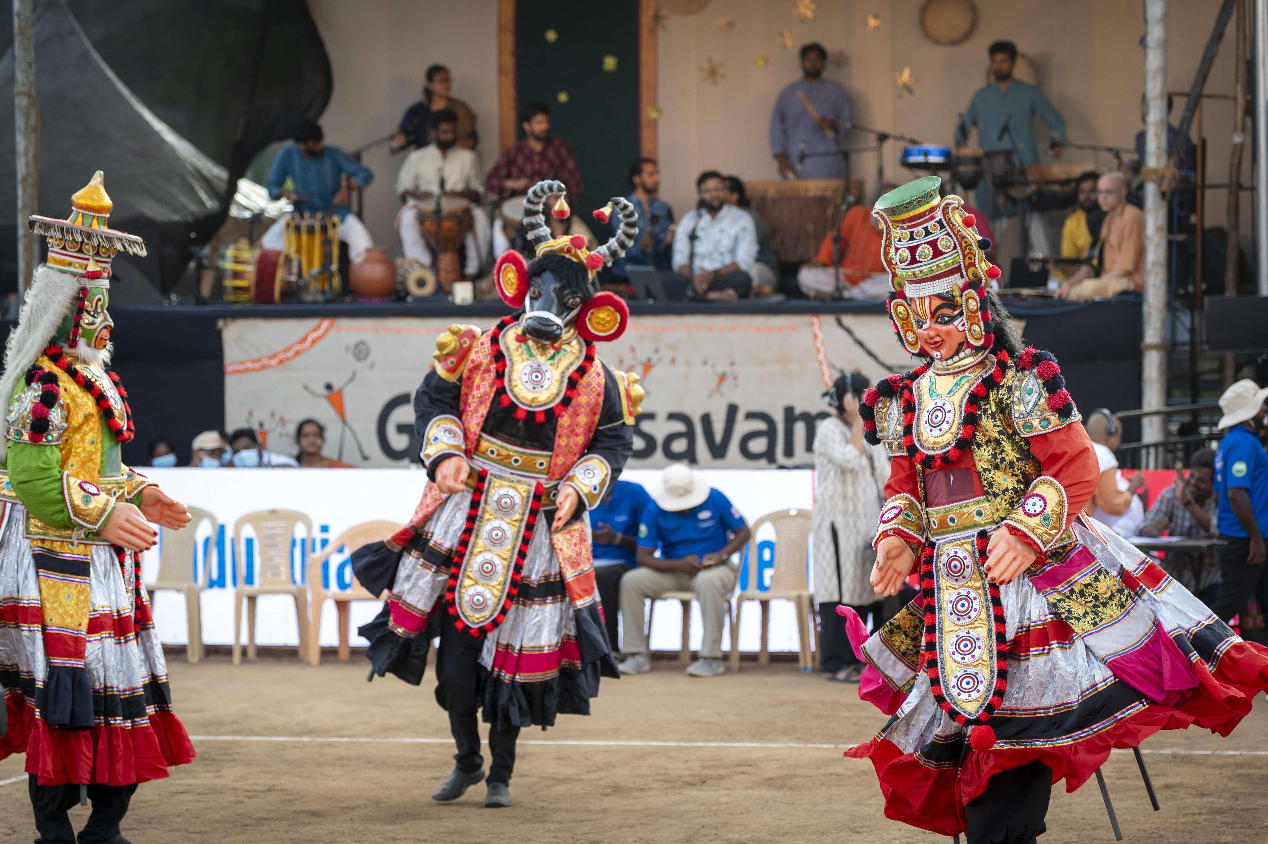 Karnataka’s fierce Puli Vesham dancers, painted in striking tiger stripes, prowled and leapt across the stage, bringing the excitement of timeless folklore to life.