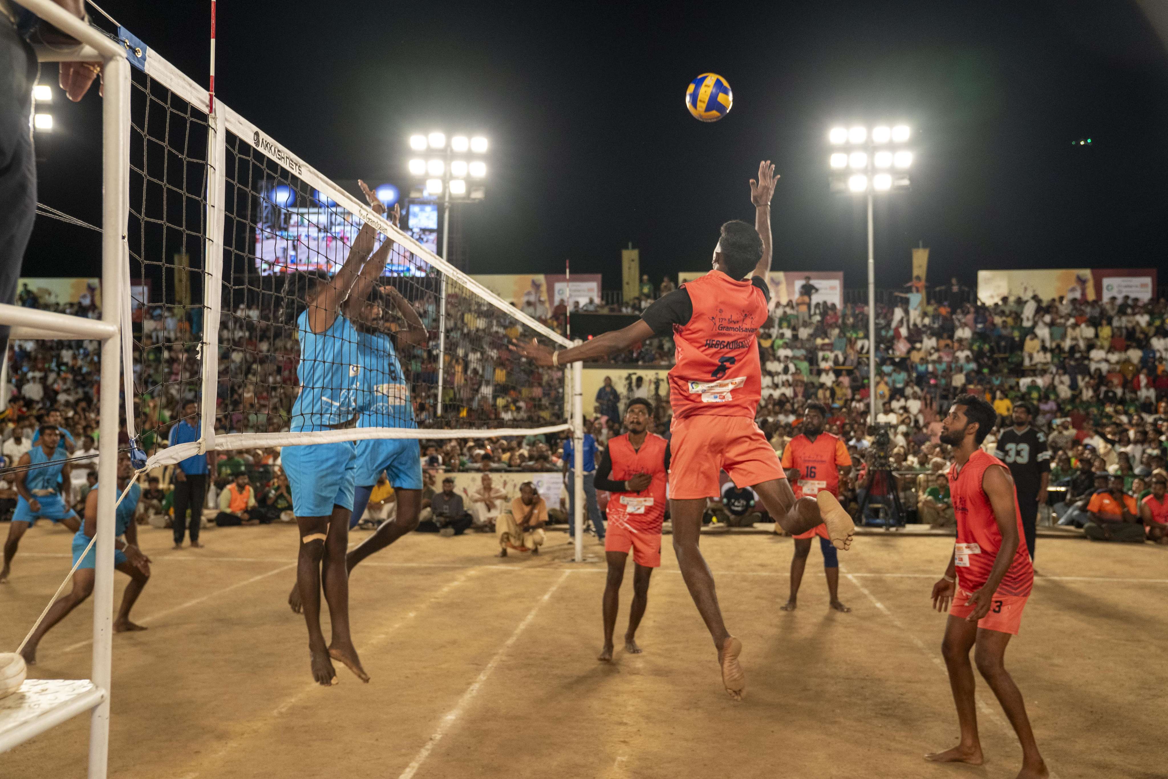 Under the bright lights, the women’s throwball finals saw Badagannur from Karnataka’s Dakshina Kannada district emerge victorious against Devarayapuram from Coimbatore, Tamil Nadu, with a scoreline of 12–9.