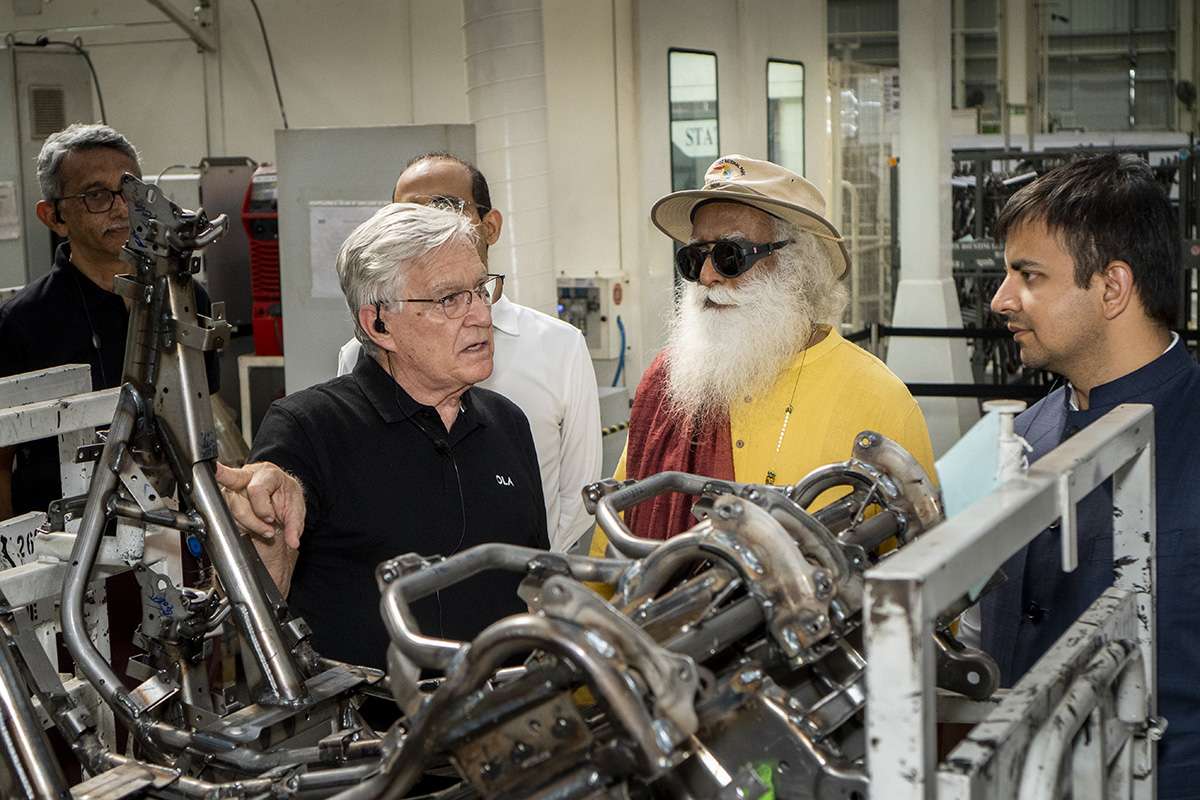 OLA Cabsன் தலைமை நிர்வாக அதிகாரியான பவிஷ் அகர்வால், OLA தொழிற்சாலைக்கு சத்குருவை அன்புடன் வரவேற்றார். அங்கு பெரும்பான்மையாக உள்ள பெண் பணியாளர்களைக் கொண்டு எலெக்ட்ரிக் ஸ்கூட்டர்களை தங்கள் நிறுவனம் உற்பத்தி செய்கிறது என்பதை அவர் பெருமையுடன் காண்பித்தார். இளம் பெண்களுக்கு அதிகாரமளிப்பதும் திறமைக்கு வாய்ப்பளிப்பதும், தேசத்தை முன்னோக்கி கொண்டுசெல்வதற்கான ஒரு உறுதியான வழி என்பதை, தனது உரையில் சத்குரு பதிவுசெய்தார்.