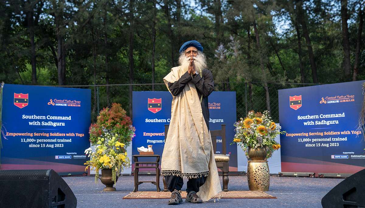 ஆகஸ்ட் 15, 2023 அன்று இந்தியாவின் சுதந்திர தினத்தன்று தொடங்கப்பட்ட இந்த இராணுவ யோகா முன்னெடுப்பு, தென்னக இராணுவப் படை மற்றும் ஈஷாவின் ஒரு கூட்டு முயற்சியாகும். இது சுமார் 11,000 வீரர்களுக்கு அடிப்படை யோகப் பயிற்சியை வழங்கும் விதமாக வடிவமைக்கப்பட்டுள்ளது. 58 சான்றளிக்கப்பட்ட பயிற்றுநர்களால் 23 இடங்களில் 125 நிகழ்ச்சிகள் மூலம் யோகா வகுப்புகள் நடத்தப்படுகின்றன. இந்தத் திட்டம் கடுமையான இராணுவ சேவையை கையாள்வதில் வீரர்களுக்கு ஆதரவளிப்பதை நோக்கமாக கொண்டுள்ளது. HDFC பரிவர்தனின் CSR முன்னெடுப்பு இந்த திட்டத்திற்கு தனது ஆதரவை வழங்கியது.