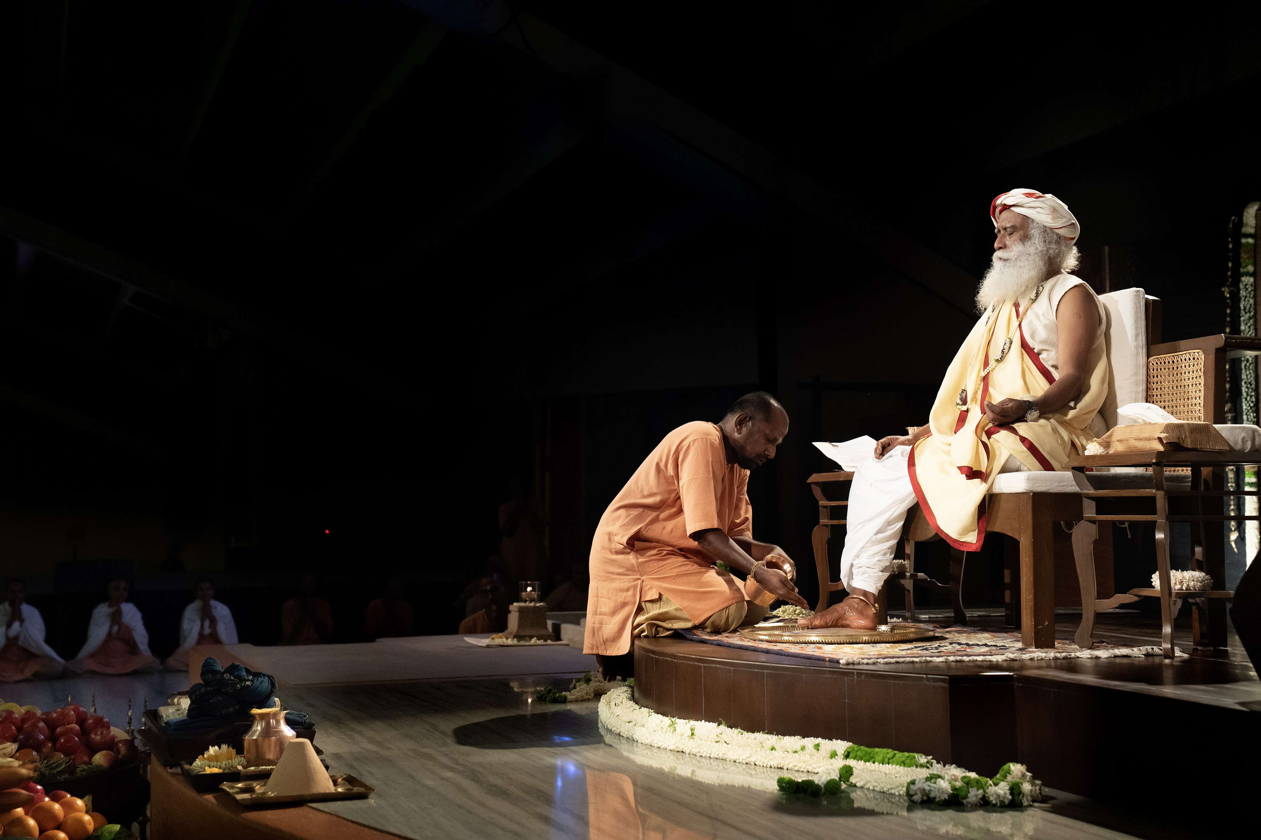 சத்குருவிற்கு செய்யப்பட்ட பக்தியின் அர்ப்பணிப்பான பாத பூஜை அனைவரையும் கட்டிப்போட்டது.